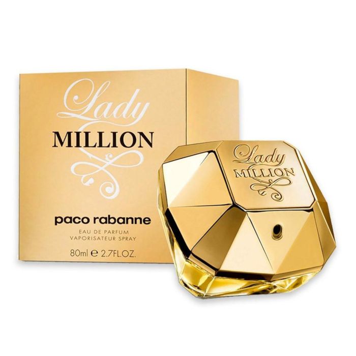 Paco Rabanne Lady Million donna eau de parfumLa fragranza femminile incarna con humor e seduzione le fantasie dell'uomo 1 Million. è una giovane donna incantevole, sicura di sé, fragile all'apparenza, ma con un temperamento di fuoco ed una sensualità incredibile. Similmente alla sua fragranza ed al suo flacone a forma di diamante, Lady Million presenta diverse sfaccettature. Grazie a qualche misteriosa alchimia, una nota di testa fresca e fiorita si stempera in un corpo ammaliante, potente e boisé.